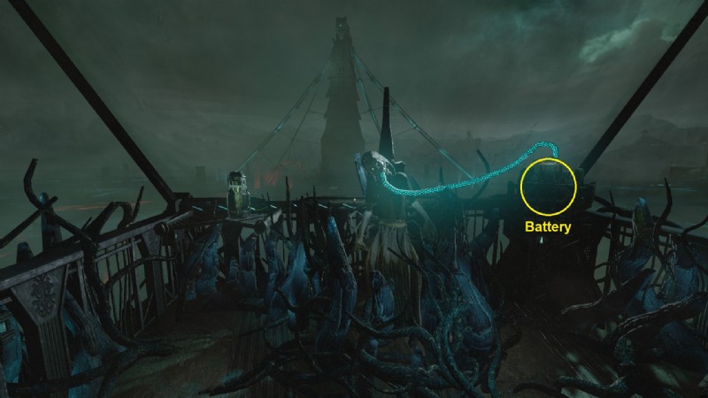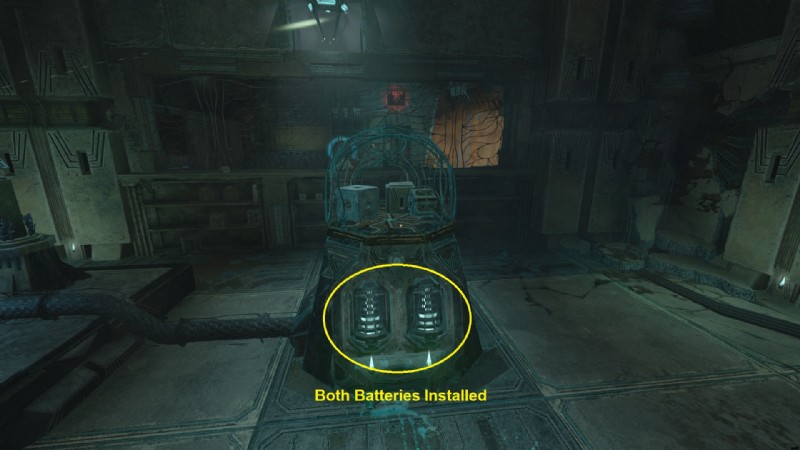 一番奥には生命維持装置のような生物がいて、エイリアンのような電池で電力を供給しています。