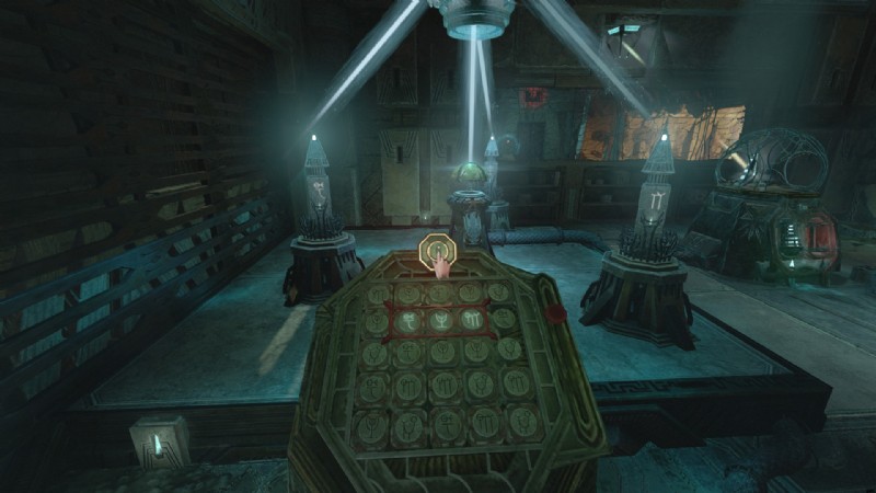 プレイスルー中、正しいコードは、上から 2 行目にある中央の 3 つの円形シンボルでした。