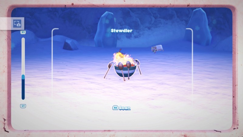 これは、対処するのが最も難しい Bugsnax の 1 つです。道の上部にある洞窟に餌を与える必要があります。中には Stewdler といくつかのトーチがあり、これらの 1 つを使用して Scoopy Banoopy に火をつけ、落ち着くのを待ってから、タイマーが切れる前に別の Trip Shot に結び付けます。タイマーが切れると、バノッパー、チーリー、スクーピーに突入します。