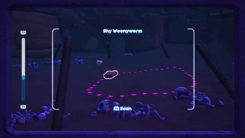 Shy Weenyworm は、Scorched Gorge 内の秘密の壁の後ろに隠れています。このエリアにアクセスするには、マップの左側に沿って進む必要があります。亀裂のある大きな壁が見えます。その近くでホットソースを撃ち、Spuddy ram を壁にぶつけて壊します。内部には、標準バージョンとまったく同じように動作する Shy Weenyworms がいくつかあります。