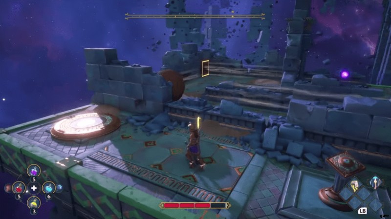 これは、初心者向けガイドを参照する必要がある場所です。 Immortals:Fenyx Rising で通気孔に乗るのは… 難しい場合があります。新しいボール/ベント トラック (ここにテーマがあります) に出くわします。今回は、スイッチの両側に 2 人のパネルがあります。スイッチをオンにすると、右側のパネルがバリアをドロップします。次に、すぐに左に飛び乗って、トラックのさらに下のギャップを埋めます.次に、最初のパネルに戻り、2 番目のバリアも削除する必要があります。