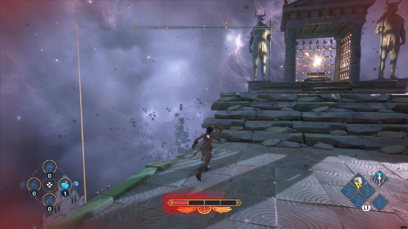 しかし、待ってください、胸はどうですか?最初に言ったように、保管庫を完成できないかもしれません。ゲームは、胸を手に入れるために必要なGodly Powerが不足していることを警告する可能性があります.しかし、最終プラットフォームからオレンジ色の光の筋がはっきりと見えます。どのような力が必要なのかわかりませんが、元に戻るために足跡をたどっても構わないのであれば、上から滑り降りることができます。