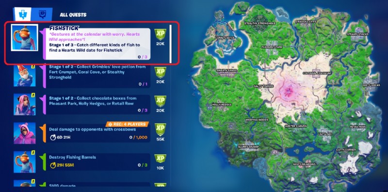 フォートナイトのチャプター 2 シーズン 5 ウィーク 11 チャレンジが正式に公開され、最初にできるタスクの 1 つになります。あなたのリストから外れたものは、Fishstick 用に 3 種類の魚を釣る必要がある場所です。