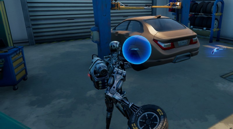 手に持っているオフロード タイヤに狙いを定めて車両に向けて投げるだけで、オフロード タイヤがすぐに装着されます。