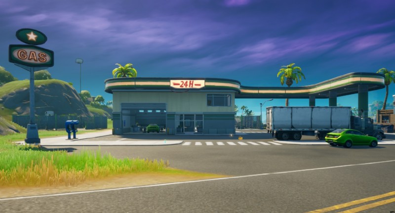 Sweaty Sands のガソリン スタンド (以下を参照) に着陸してみてください。この場所には、車両、ガソリン、必要に応じてオフロード タイヤなど、必要なものがすべて揃っているはずです。