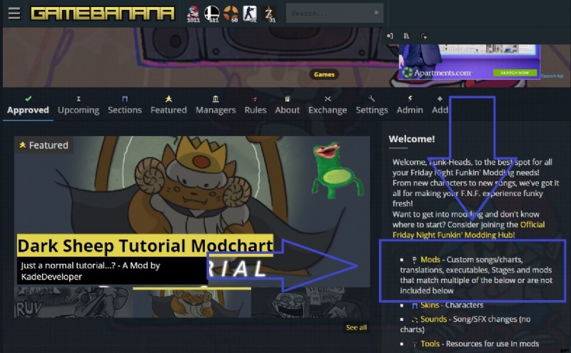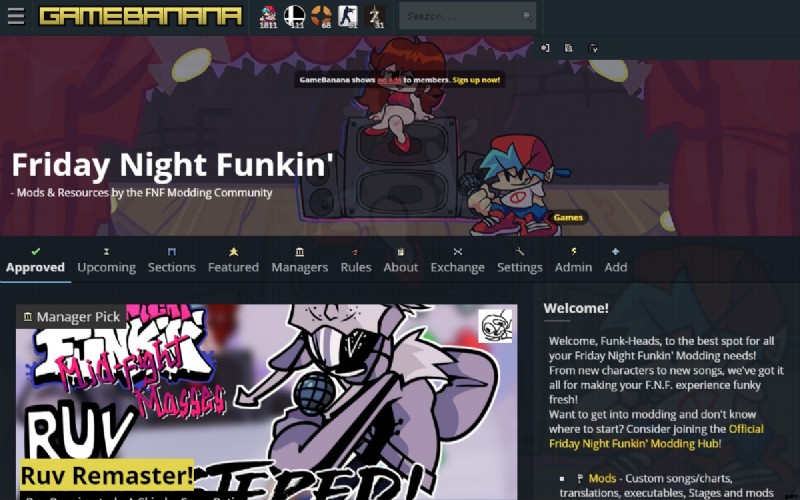 フライデー ナイト ファンキンを検索するか、この記事の執筆時点では、ホームページの GameBanana ロゴの右にあるフライデー ナイト ファンキン アイコンをクリックしてください。