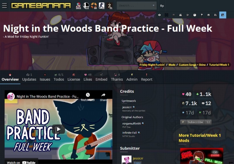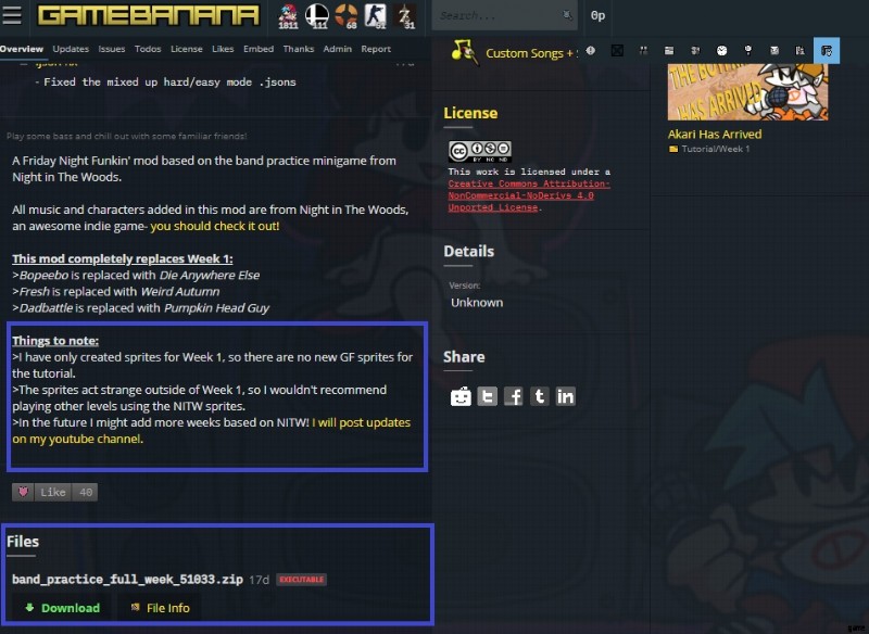 この場合、mod の名前 (Night in the Woods Band Practice – Full Week) または「FNF – Night in the Woods」のいずれかをお勧めします。これは、コレクションにモッドを追加し始めるときに役立ちます。