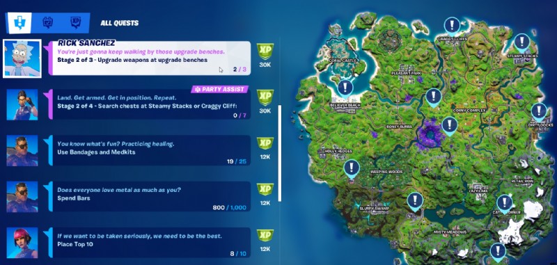 アップグレード ベンチで武器をアップグレードするという課題に関して、フォートナイトのプレイヤーが最初に抱く可能性が高い質問は、これらのアップグレード ベンチがどこにあるかということです。上のマップ画像では、Fortnite のすべてのアップグレード ベンチの場所がマークされています。