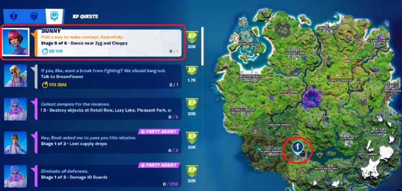 「Dance Near Zyg and Choppy」クエストを完了すると、フォートナイトで 30,000 XP を獲得できます。