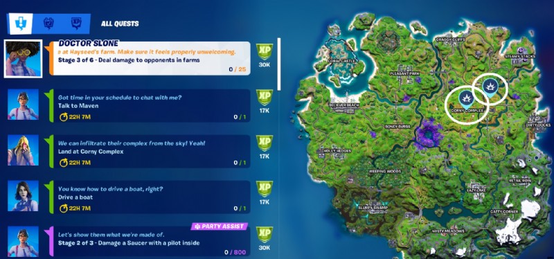 コーニー コンプレックスまたはヘイシードの農場 (および敵プレイヤー、または IO ガードのようなゲーム内の敵) で「農場で対戦相手にダメージを与える」クエストを完了すると、30,000 XP を獲得できます。