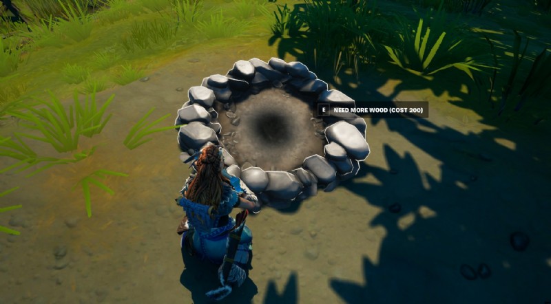 適切なキャンプファイヤーを見つけたら、次のステップは火をつけて燃やすことです。両方のプロンプトにあるように、キャンプファイヤーに火をつけるには 200 ウッドが必要です。キャンプファイヤーを燃やすために、さらに 30 ウッドが必要になる場合もあります。