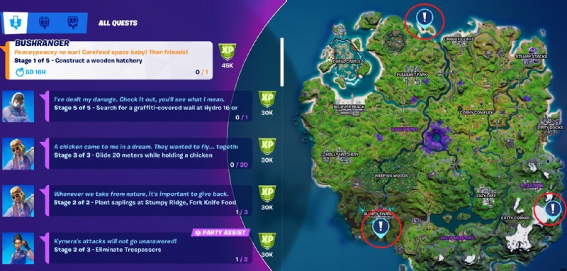 フォートナイト チャプター 2 シーズン 7 のプレイヤーが最初に抱く質問は、木製の孵化場を建設するにはどこに行く必要があるかということです。クエストのリストでレジェンダリー クエストを操作すると、さまざまな場所がマップ上に表示され、どこに行くべきかがわかります。
