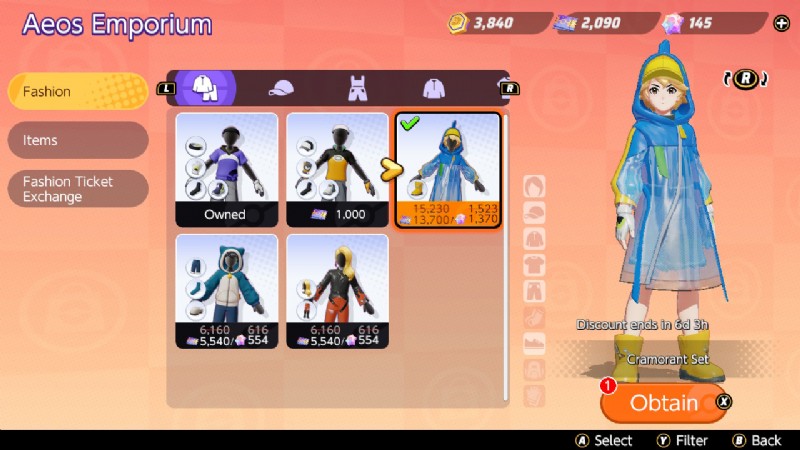Aeos チケットは、ショップの Aeos Emporium セクションからトレーナーの装飾アイテムを購入するために使用されます。