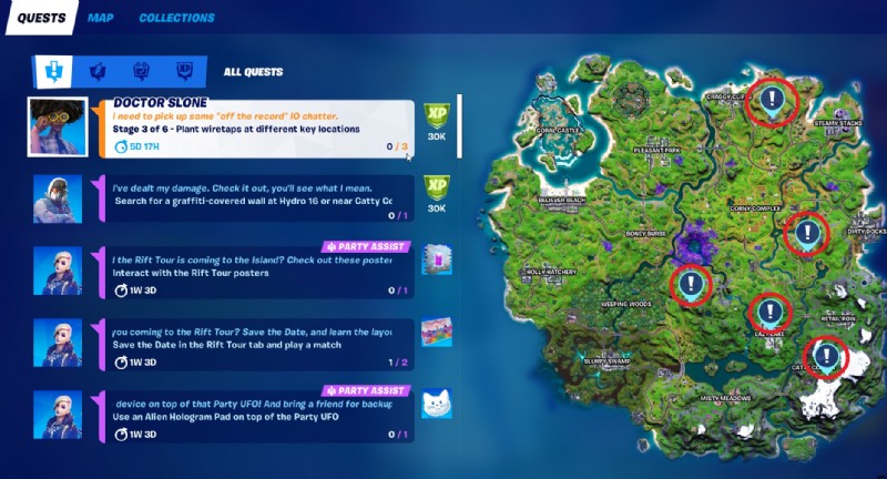 フォートナイト チャプター 2 シーズン 7 のウィーク 8 チャレンジを進めていくと、最終的にはそのタスクに遭遇することになります。さまざまな重要な場所に盗聴器を仕掛けます。