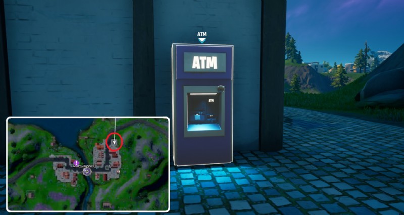 基本的に、Fortnite で Free Guy クエストを取得するために必要なことは、ATM を見つけて操作することだけです .上のマップ画像では、Free Guy Quests を取得するために使用した ATM をマークしました。ミスティ メドウズにあり、簡単に見つけることができます。