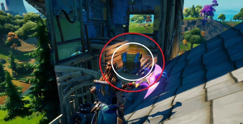 2 番目のチェストはスチール ファームの屋根裏スペースにあります。タワー内の宝箱を探したら、Steel Farm の屋根に注目してください。つるはしを使用して、屋根を壊し、しゃがみ、ひさしの下を見てチェストを探します。