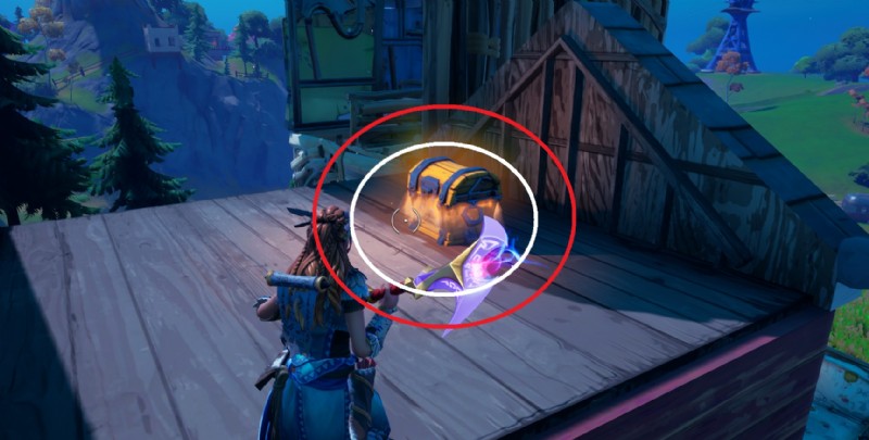 両方のエリアから、最上階の真下にあるタワーの宝箱に到達できます。チェストを表示するには、つるはしで木製の壁を壊す必要があります。