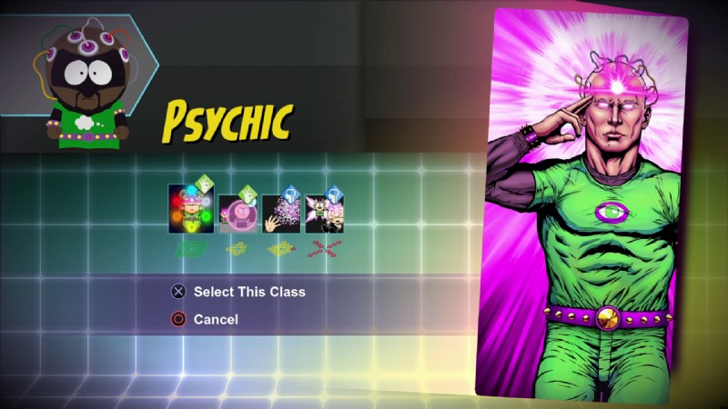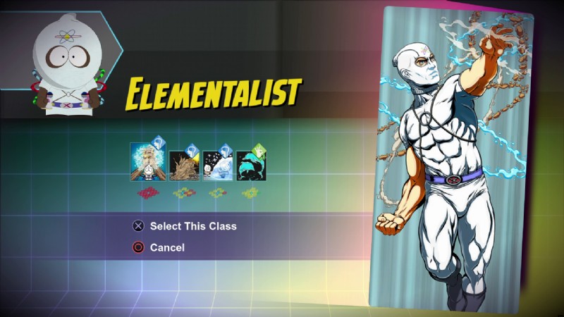 Freeman's Tacos のアイテムを Cartman に届けるというミッションを完了すると、Coon Lair に呼び戻され、2 番目のクラスが与えられます。サイキック、エレメンタリスト、サイボーグから選択できます。セカンダリ クラスを選択すると、3 つの新しい能力に加えて、選択可能な新しい究極の攻撃が与えられます。残念ながら、一度にアクティブにできるのは 3 つの通常能力と 1 つの究極攻撃のみです。