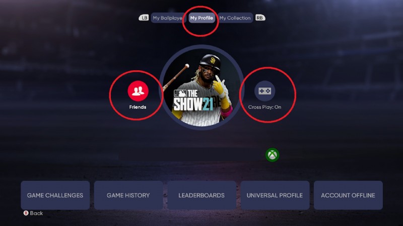 MLB The Show 21 で友達と遊ぶための最初のステップは、それらの友達をゲーム内で友達として追加することです。別のプラットフォームで友達とプレイしたい場合は、MLB The Show 21 でクロス プレイがオンになっていることも確認してください。