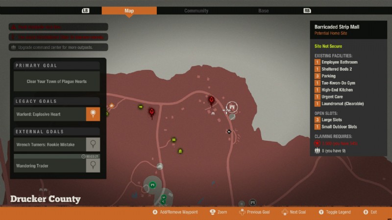 ステート オブ ディケイ 2 のドラッカー郡の北側には、請求待ちのバリケード ストリップ モールがあります。ただし、このベースを確保するのは簡単ではありません。バリケード ストリップ モールには 8 人の生存者が必要で、ロックを解除するにはなんと 3,500 の影響力が必要です。