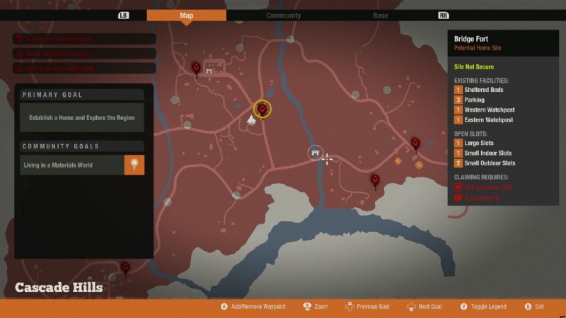 State of Decay’s Meagher Valley is a much more open area than Cascade Hills. It’s also quite easy to travel across in comparison to the other regions. While Whitney Field may be considered the best base in Meagher Valley, there are some other base locations that may be worth claiming along the way, depending on the needs of your community.