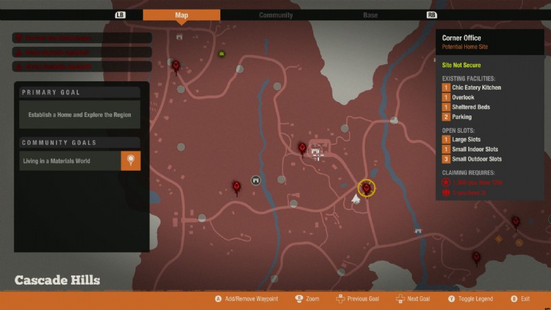State of Decay 2 の Cascade Hills の中心にある別の基地は、Corner Office 基地です。この基地はマップの中心に非常に近いため、リソースをあまり消費することなく、さまざまな基地やエリア間を簡単に移動できます。
