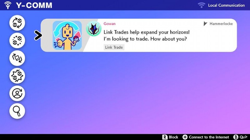 更新: こちらに記載されているように、ポケモン ソードとシールドには GLS がなくなりました 記事 ただし、Y ボタンを押してオンライン通信メニューを表示することで、同じ機能にアクセスできます。