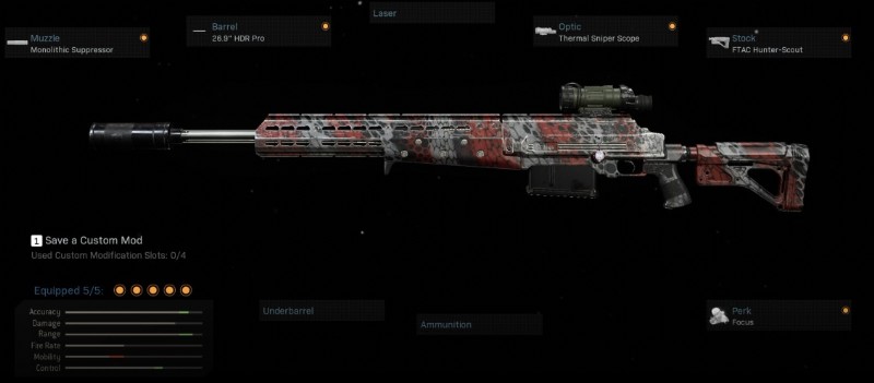 これらの属性は、ダメージ範囲、照準の安定性、弾丸の速度、反動制御、ひるみ抵抗です。これらの特定の属性を最大限に活用することで、HDR スナイパーライフルのロードアウトを可能な限り最高のバージョンにして、プレイヤーが Call of Duty:Warzone の状況で成功できるようにします。