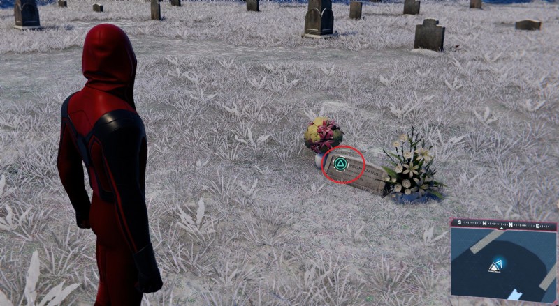 墓を見つけたら、そこまで歩いて、プロンプトが表示されたら三角形を押す必要があります。そうすることで、画面の右上隅に完了通知がポップアップ表示される「Never Give Up」トロフィーを獲得できます。