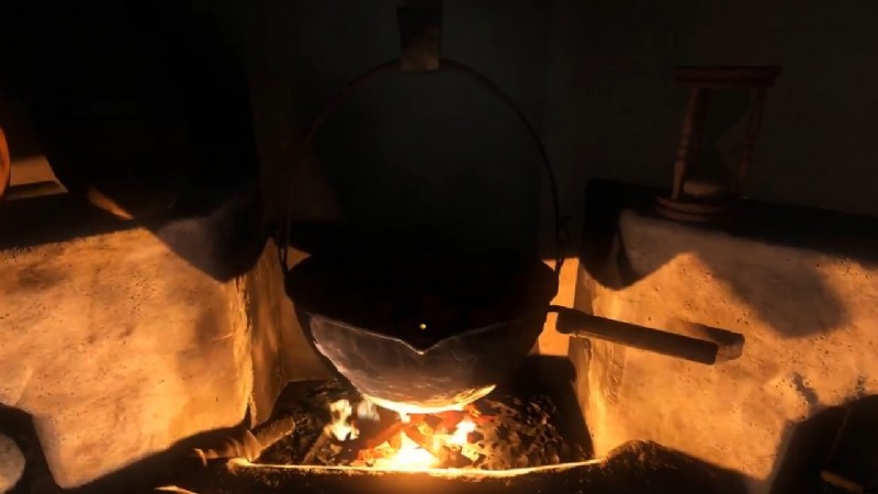 ポピーとカノコソウを大釜に入れ、2 回転煮ます。アイブライトを挽いて大釜に加えますが、沸騰させないでください。最後にイノシシの牙を入れて蒸留します。