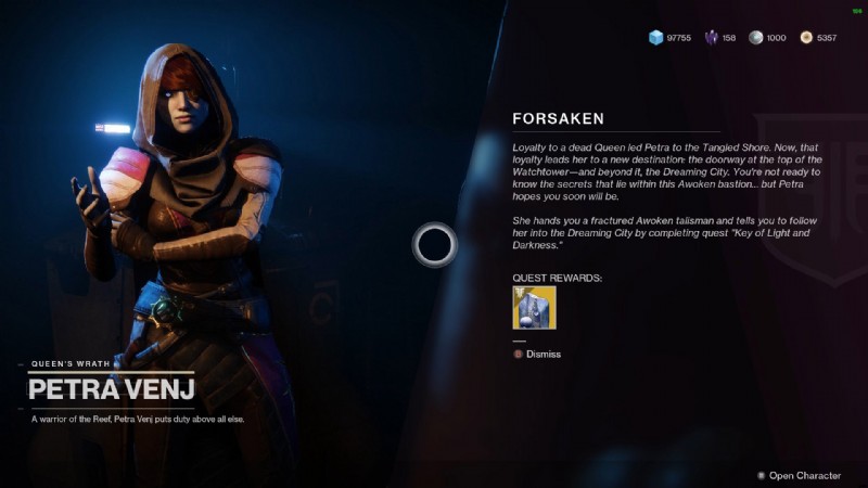 クエストを開始するには、Destiny 2:Forsaken のメイン キャンペーンを完了した後、Petra Venj と話す必要があります。