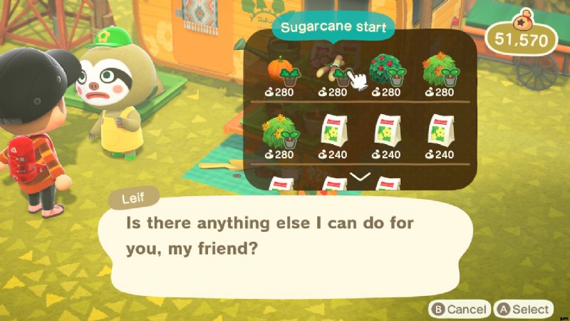 Leif を購入した後、建物が建てられるまで 1 日待つ必要があります。これが完了すると、レイフの商品を閲覧することができ、彼はサトウキビと小麦を回転スケジュールで販売するので、運が良ければ両方を手に入れて島に植えることができます.