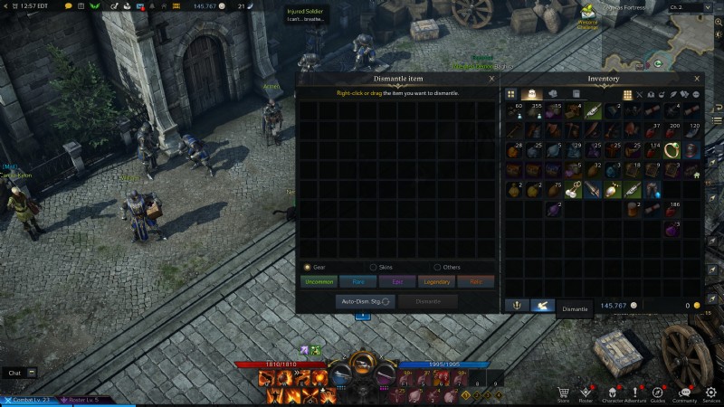 Lost Ark でギアを解体するには、インベントリを開いて、インベントリ ウィンドウの下部にあるハンマー アイコンをクリックする必要があります。ここから 2 つ目のウィンドウが表示され、現在分解しようとしているすべてのギアが表示されます。