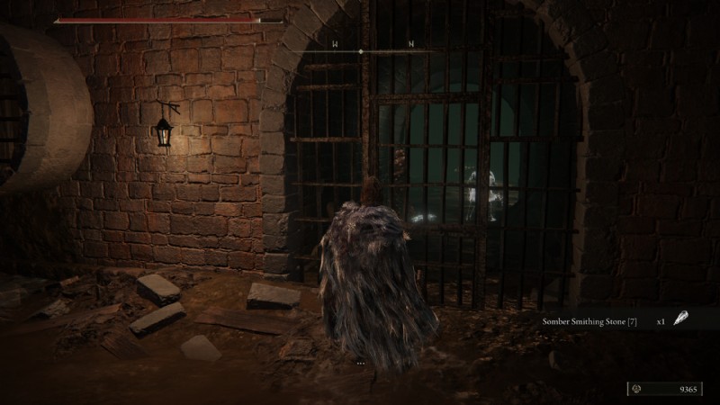 はしごの一番下にぶつかったら、鉄の門を通り抜けて左に曲がり、別のはしごを端から下ります。水浸しの道をたどると、場所名「Subterranean Shunning-Grounds」がポップアップ表示されます。これにより、正しい道を進んでいることがわかります。