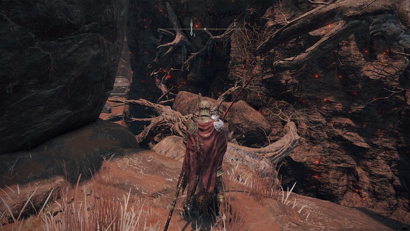 放棄された洞窟にたどり着くには、プレイヤーは Caelid に向かう必要があります。ここは深い峡谷が北に伸びており、その脇に廃墟の洞窟があります。ただし、そこに着くのは少し厄介です。放棄された洞窟の西には、くすぶりの壁と呼ばれる恵みの場所があります。ここから東に曲がり、遠くに見えるエルドツリーに向かいます。少し右を目指すと深い峡谷に出ます。