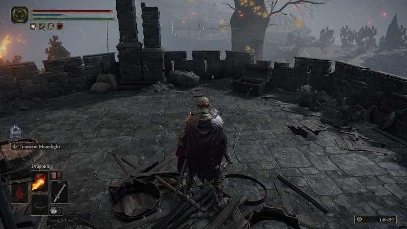 Dectus Medallion (右) は、Caelid の東側にある Dragonbarrow の Fort Faroth にあります。これは、多くのダメージを与えることができる飛んでいる敵で満たされた、より頑丈な城です。暗い 1 階に入り、左に曲がり、部屋を疾走して反対側のはしごに向かいます。上に登ると、はしごの上部にあるチェストから必要なアイテムを入手できます。