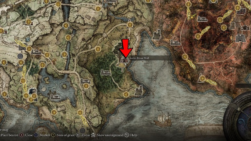 マリカの傷跡は、シオフラ川エリアの滝の近くの死体で見つかります。ただし、アクセスしやすい場所ではありませんので、ご案内させていただきます。開始するには、シオフラ川の場所に向かう必要があります。これには、East Limgrave の Erdtree に向かうことでアクセスできます。