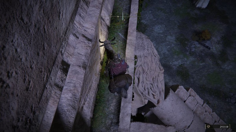 右に回り、次に左に回り込むと、途切れた通路があります。これにより、左につながるさらに別の狭い棚に飛び降りることができます。