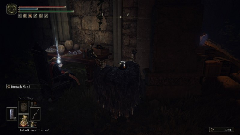 ストームベール城を通り抜け、初めて湖のリウルナに入ると、その最初の湖に面した崖サイト オブ グレースの左側に (アイリスの) 教会があります。そこに行って、主に聖なる涙をつかみますが、Thops にも話しかけます。彼は自分の気持ちでベンチでゴロゴロしていて、あなたが彼に話すとき、彼が最初にすることはお金を要求することです.先に進んで彼に渡してください。そうすれば、彼はあなたにいくつかの呪文を売ってくれます. Glintstone Key についての情報も後で教えてくれます。