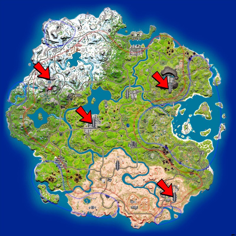今週のフォートナイトの課題の 1 つは、シージ キャノンから自分自身を発射することです。クエストを完了するには、合計 150 メートル移動する必要があります。シージ キャノンは、マップ全体に浮かんでいる新しい IO 飛行船で見つけることができます。下の地図でそれらを見つけることができます。