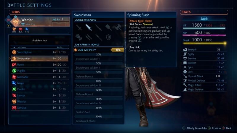 その奇妙なトーンにまだ混乱していない場合は、ストレンジャー オブ パラダイス ファイナル ファンタジー オリジンが楽しい時間を過ごせることは間違いありません。その大部分は、あなたが期待するすべての古典的なファイナルファンタジージョブクラスを取り、さらにいくつかを追加する、とてつもなく巨大なジョブシステムです.実験するジョブがたくさんあるので、それは大変な作業のように聞こえます!幸いなことに、それほど悪くはありません。