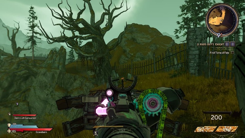 エリアの反対側、大きな墓に着く前に、丘の上に特異な木が見えます。その後ろに登ったり降りたりして、次のラッキー ダイスを見つけます。