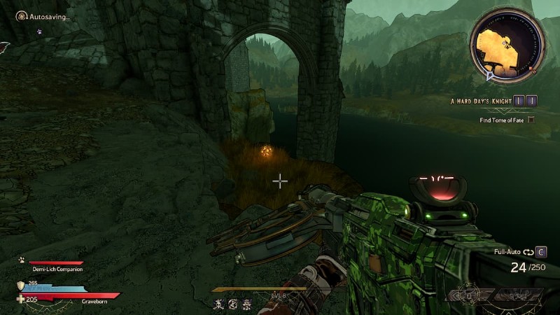 次のエリアに入り、右に進みます。墓石の横に次のラッキー ダイスが表示されます。
