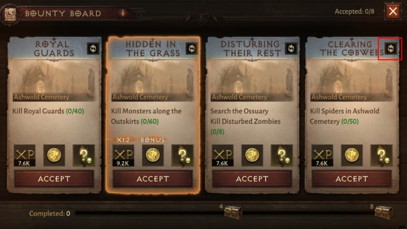 Diablo Immortal でクモの巣懸賞金のクリアを放棄する方法