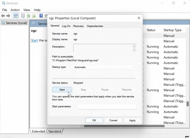 次に、「vgc」という名前でサービスを探します。サービスを右クリックし、メニューから [開始] を選択します。