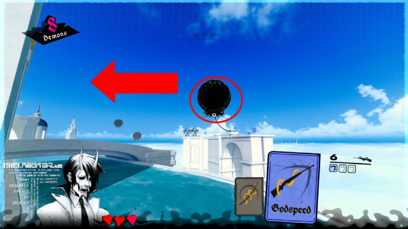 スラッシャー ギフトを受け取るには、水路を使って中央の建物を回り、大きな赤い壊れやすいドアを無視します。建物の反対側には、この風船の悪魔がいます。それを使用して通常どおりレベルをバウンスして進行させることができますが、バウンスして中央の建物の後ろを通過するために必要なギフトを取得します (矢印に従ってください)。跳ね返ったら、ダッシュを使って中に浮かんでいるギフトをつかみます。