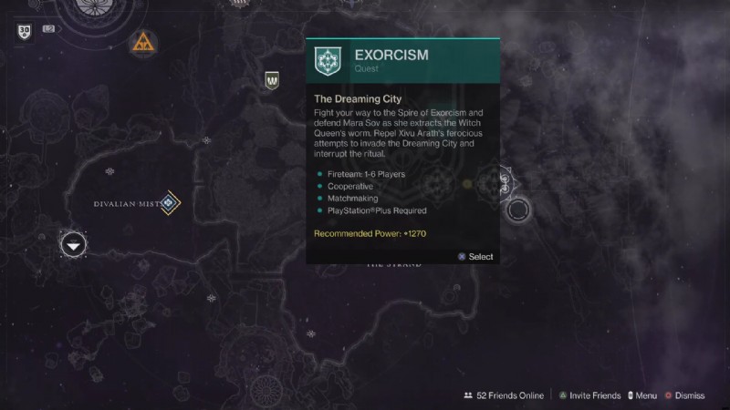 まず、ドリームランドシティでエクソシズムの場所を見つける必要があります。アストラル アラインメント アクティビティの横にあるマップの右側にあるエクソシズム アイコンを探します。