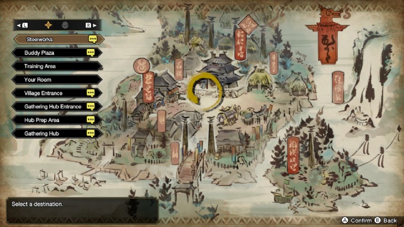 コリンを探しに行きたくない場合は、実際には世界地図から移動できます。プラスボタンを押してメニューを開くと見つかります。次に、[世界地図を開く] が表示されるまでタブを移動し、それをクリックします。カムラとエルガドの間を自由にファストトラベルできるようになりました。直接行きたい場所を選択することもできます。これにより、長い目で見れば、2 つの異なる場所の間を行き来する際に多くの時間を節約できます。