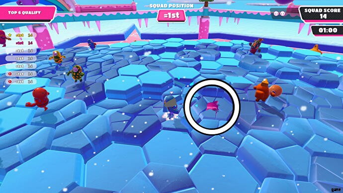 ラウンドの名前が示すように、壊れやすいプラットフォームを通ってヘルメットまでつま先立ちする必要があります。氷が全部なくなると失格になるので注意。
