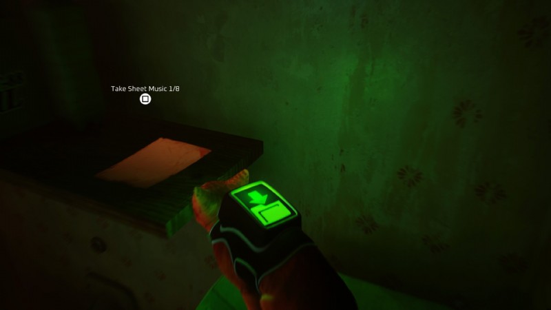 2 階の窓からバーを出て、屋根に飛び乗り、角を曲がってください。先ほど 2 枚目の楽譜を集めたときに見た開いたウィンドウが、あなたが向かっている場所です。その窓に飛び乗って、壊れたドアを通り抜けてください。楽譜は本棚のすぐ右側に置かれます。